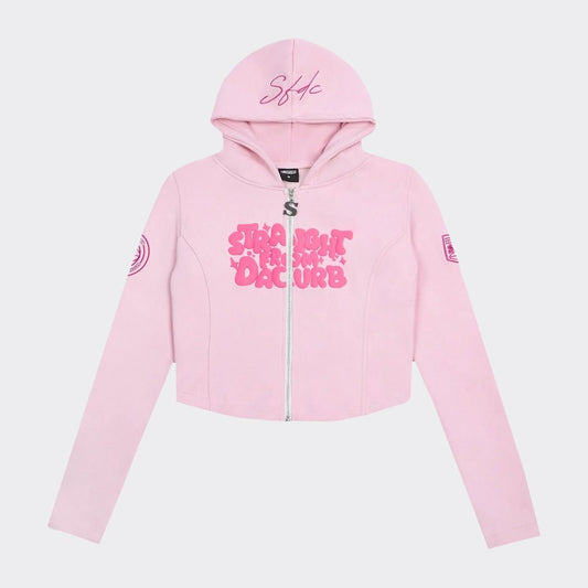 SFDC Women’s Cropped Zip Hoodie – Pink Wash
