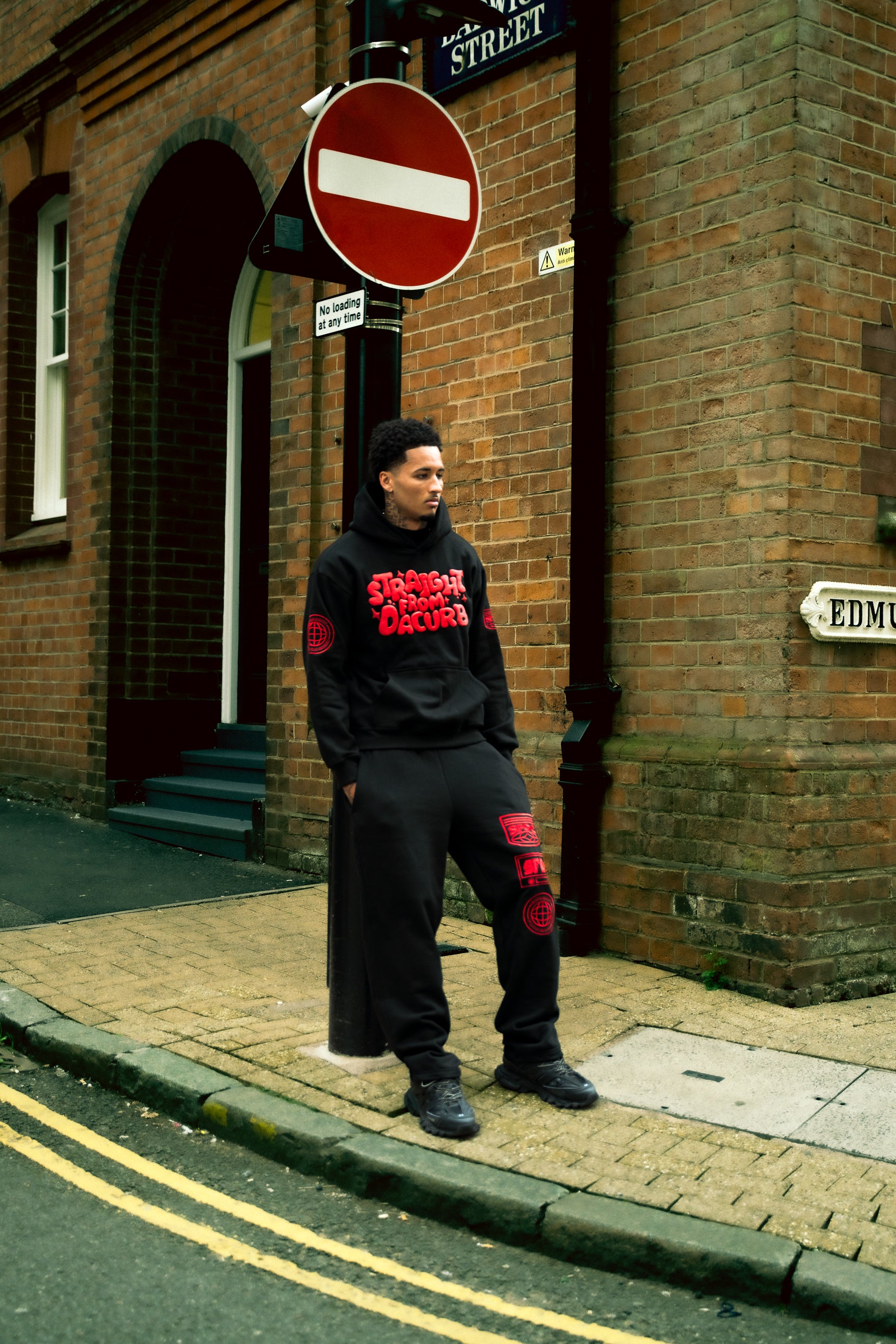 Crafted from soft, premium fabric, they’re designed for all-day wear — whether you're chilling, running errands, or turning heads on the go. The bold black and red palette ties seamlessly into the SFDC aesthetic, giving you a full fit that speaks volumes without saying a word.